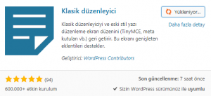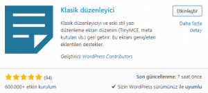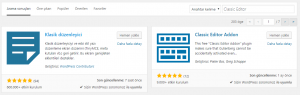 Sağda bulunan eklenti arama kutucuğuna Klasik Editor yazın.